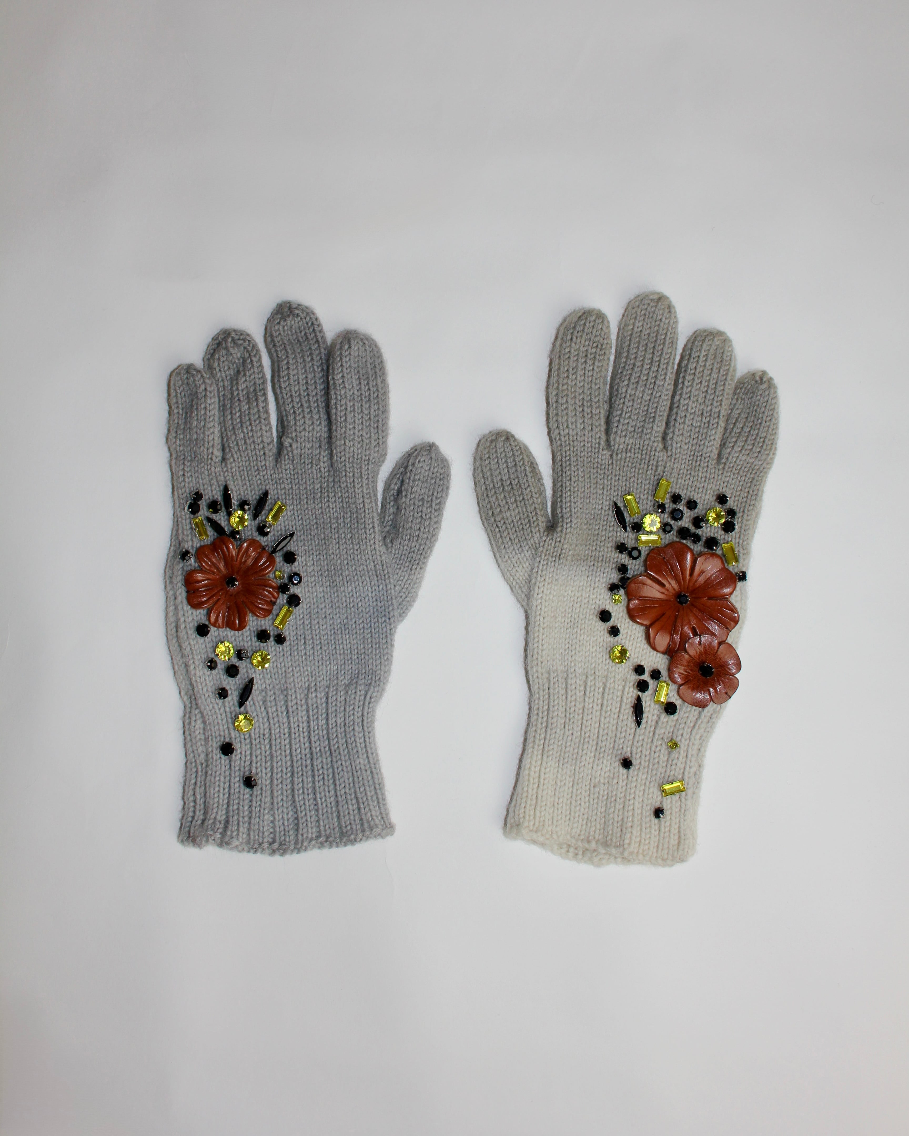 レザーのフラワーとたくさんの宝石で飾られています。全て手作業