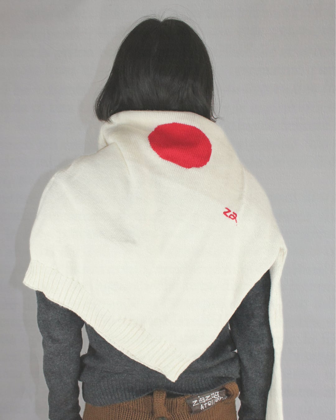 このニットにはインターシャ編みの旗が特徴で、za のロゴが手刺繍されています。